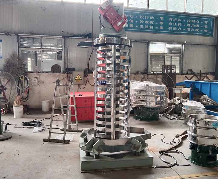 3.雙質(zhì)體慣性式垂直振動提升機:這種提升機的垂直螺旋槽和下質(zhì)體圓盤之間用板彈簧按圓的切向鏈接,慣性振動器大多采用平行軸式,安裝在圓盤上。板彈簧除起蓄能作用外,還對兩只提的運動寄到幾何約束作用,使上、下質(zhì)體做相對垂直和扭轉(zhuǎn)運動。除了這些垂直振動提升機設備, 我公司生產(chǎn)的還有斗式提升機,板鏈提升機等提升機設備,想了解更多關于提升機的信息請撥打15836198876尋找王經(jīng)理。