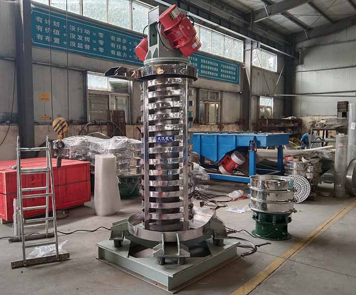 垂直振動(dòng)提升機(jī)不同于斗式提升機(jī),它是安裝在輸送塔底部的兩臺(tái)振動(dòng)電機(jī)工作的,兩臺(tái)振動(dòng)電機(jī)交叉安裝,產(chǎn)生激振力,強(qiáng)迫整個(gè)輸送塔體作水平圓運(yùn)動(dòng)和向上垂直運(yùn)動(dòng)的空間復(fù)合振動(dòng),螺旋槽內(nèi)的物料則受輸送槽的作用,作勻速拋擲圓運(yùn)動(dòng),沿輸送槽體向上運(yùn)動(dòng),從而完成物料的向上(或向下)輸送作業(yè)。常用于礦山、冶金、機(jī)械、建材、化工、橡膠、醫(yī)藥、電力、糧食、食品等行業(yè)的塊狀、粉狀和短纖維狀固體物料的提升。
