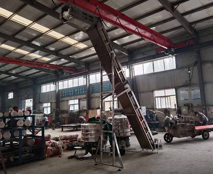 大傾角皮帶機相比普通皮帶具有很多優點。增大了輸送角度(30~90度);占地面積小,投資少;輸送量大、提升高度更高;從水平到傾斜(或垂直)能平穩過渡;適宜輸送易撒落的粉狀、粒狀、小塊狀、糊狀及液態狀物料;能耗低、結構簡單、膠帶強度高、使用壽命長。