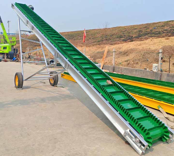 1.擋邊帶式輸送機(jī)為一般用途的散狀物料連續(xù)輸送設(shè)備,采用的是具有波狀擋邊和橫隔板的輸送帶。因此,特別適用于大傾角輸送。