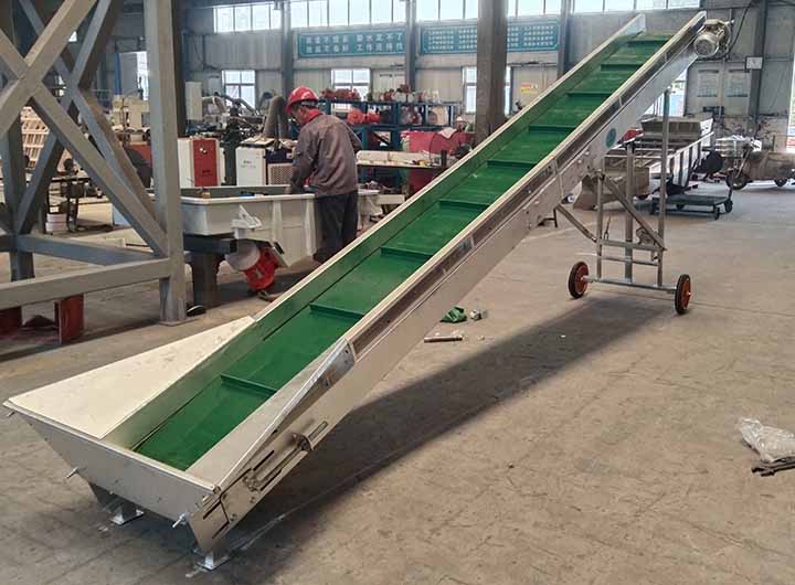 移動皮帶輸送機也叫可移動式皮帶輸送機適用于散糧、包糧的輸送、堆垛、裝卸車等作業。有5米、8米、10米、12米、15米、18米、20米等規格,移動式皮帶輸送機有電動、手動升降兩種型式。可移動式皮帶輸送機具有快、慢兩種速度、以適應散運、包裝的不同要求,提高了設備的利用,發揮了一機多用的性能。在移動式皮帶輸送機機架兩旁裝有旁導管,防止糧包在輸送時掉包,并在進料斗兩側裝置有調節手柄,將側板撐起、防止糧食撒漏,便于散裝糧食輸送。大、小走輪均采用實心膠輪,防止壓碎糧食和倉庫地面。大小走輪均裝有滾珠軸承、小走輪具有自動轉向的功能,保證了機器移動輕便靈活。移動式皮帶輸送機常見帶寬有500mm,650mm,移動皮帶輸送機的價格根據帶寬和長度而定,不同的帶寬,同的長度,價格也就不一樣,具體價格可以咨詢客服。